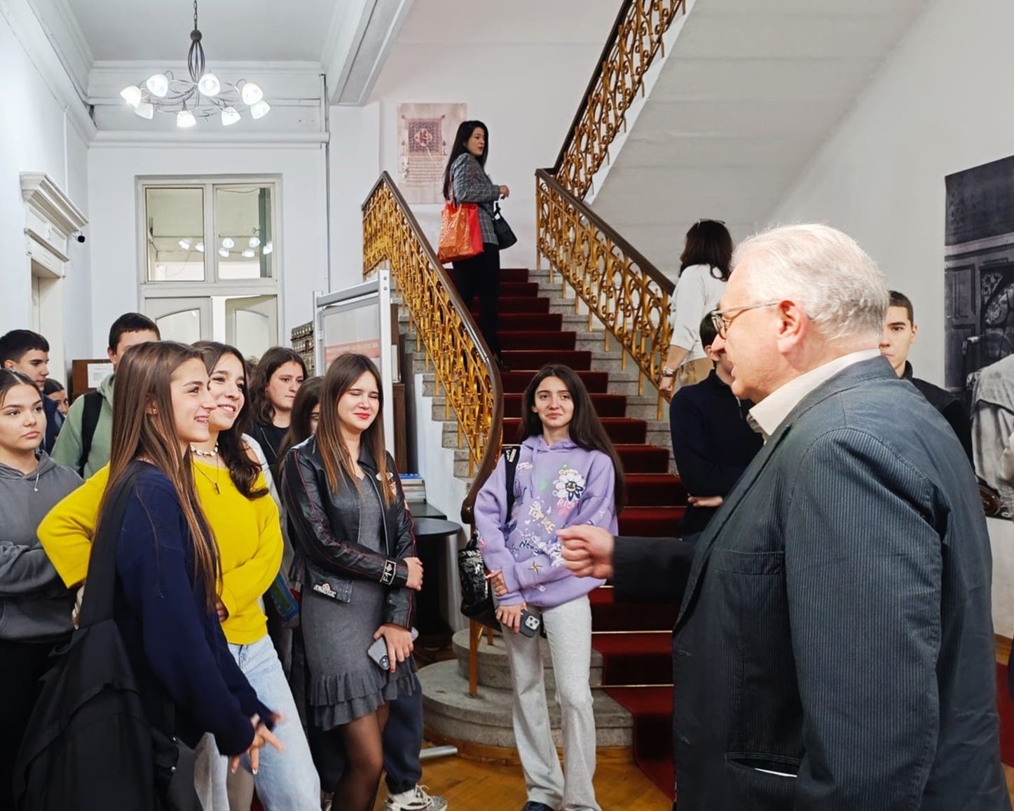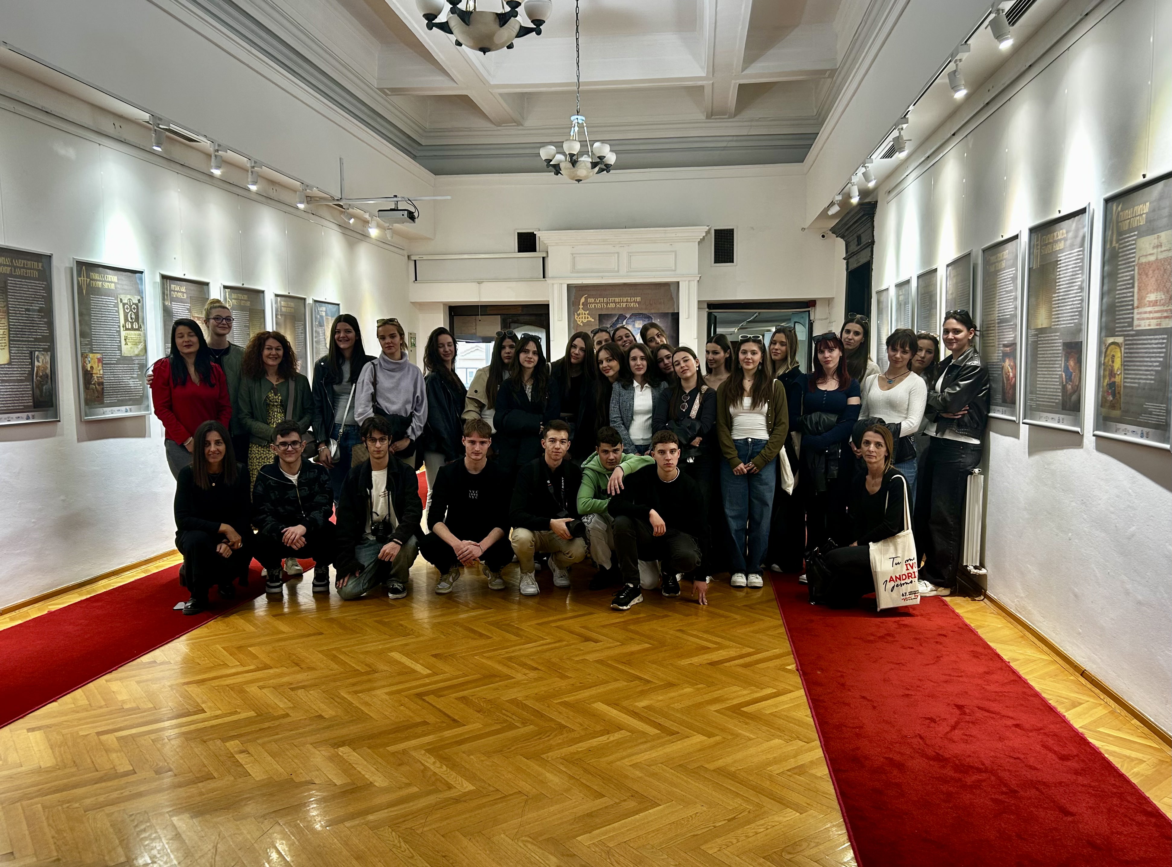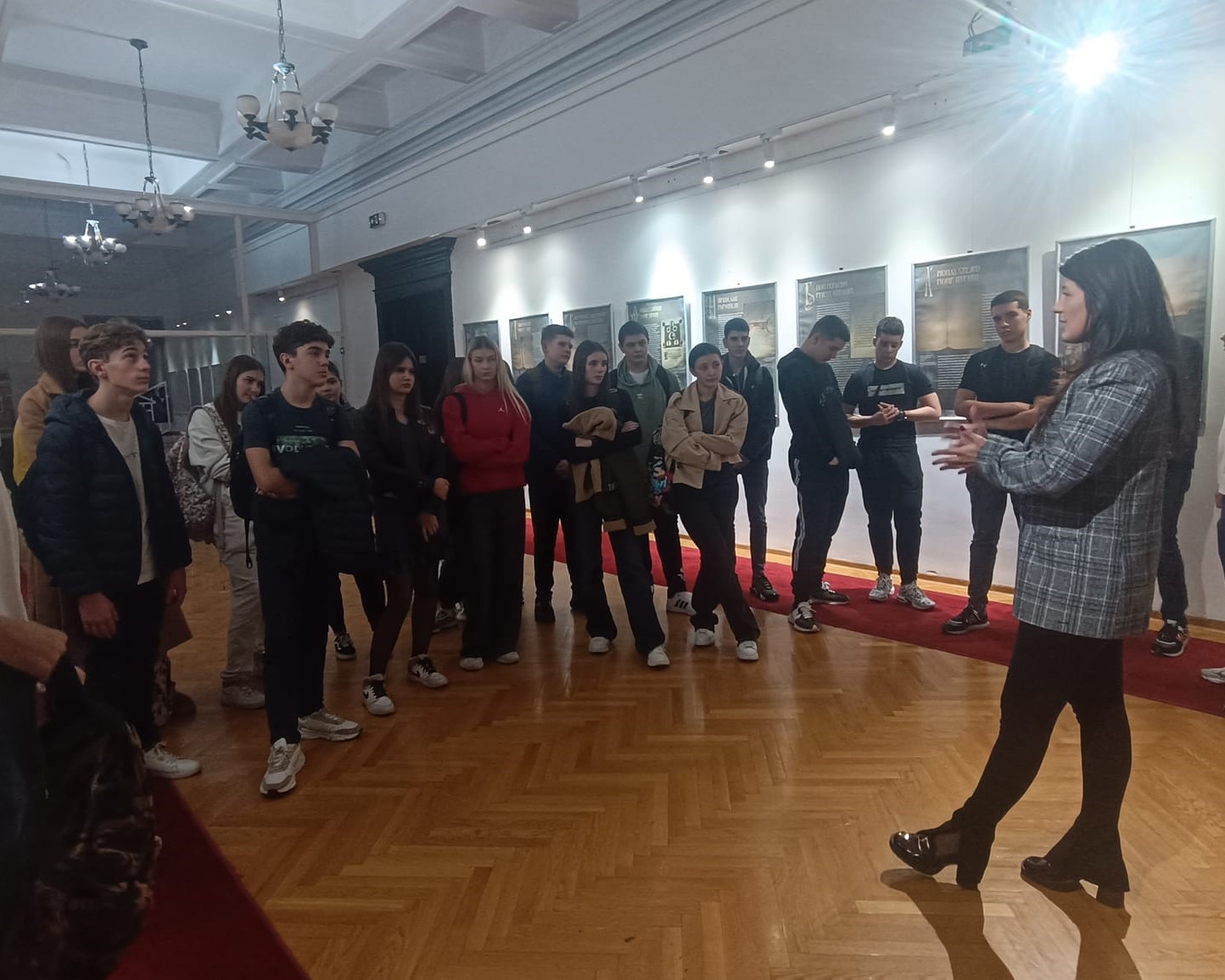 Ученици от гимназията в Котор, Черна гора, на посещение на изложбата с преподавателката Лиляна Чолан.