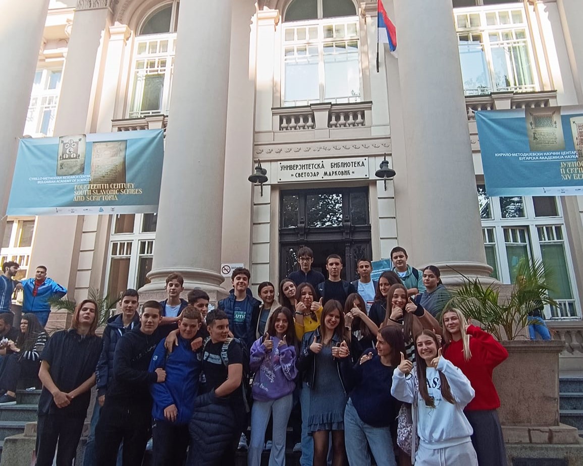 Ученици от XIV белградска гимназия на посещение на изложбата с учителката Милица Живкович.